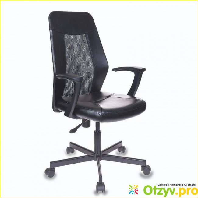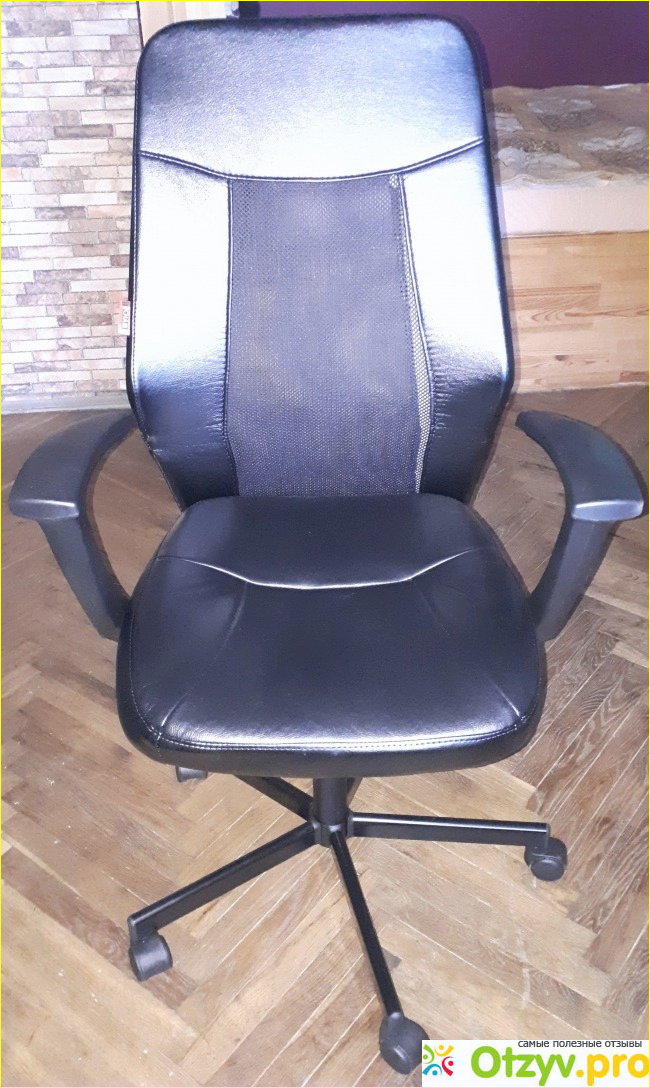 Сиденье и окантовка спинки из искусственной кожи, в середине спинки вставка из упругой сетки. Высота регулируется, ролики катаются легко и без посторонних звуков. Подлокотники удобные, выполнены из массивного пластика, не думаю, что быстро сломаются.