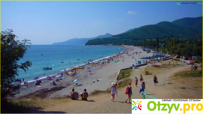 Пляж галечный, а потому перед его входом немало палаток с предложением специальной обуви, чтобы ногам было не больно ходить по камням.
