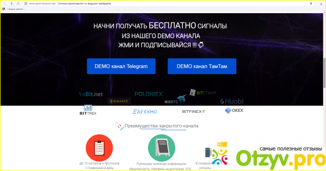 Мне очень понравилось за минимальную цену получать сигналы от топовых аналитиков. Подписался на канал более месяца назад и начал торговать по их сборке сигналистов и наконец то пошел заработок. Я новичок в этом деле и администратор сервиса мне помог разобраться в тонкостях крипто торговли, +при подключении в закрытый канал получил обучающий материал по торговле. Рекомендую!