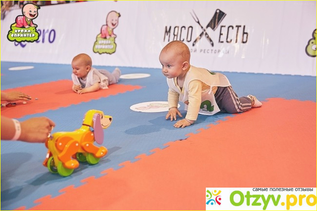 Вот так это выглядело. Сынок мой сначала очень испугался, расплакался, когда началась громкая музыка и ведущий стал говорить в микрофон, но в итоге он освоился и даже прополз свою дистанцию.