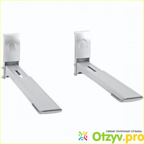 Держатели у кронштейна являются выдвижными. Исходя из этого, можно регулировать как ширину так и длину удобную для той или иной техники, которую вы собираетесь ставить на него. Кронштейн для СВЧ-печей способен выдержать нагрузку техники до сорока килограмм.