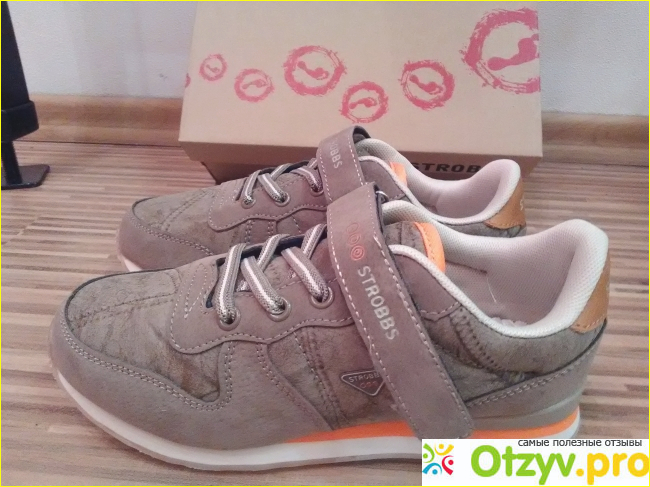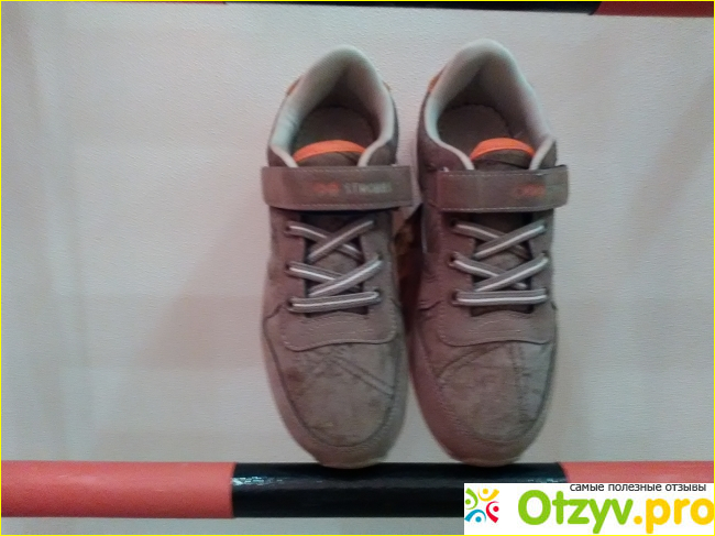 Обувь 34 размера, коричневого цвета, на липучке. Есть имитация шнуровки, но на самом деле это резинка, которая в зависимости от объёма ступни, слегка растягивается. Аккуратные оранжевые вставки, делают внешний вид обуви более весёлым. Подошва удобная. Я в этих кроссах намотала 5 километров и ноги не устали и не вспотели.