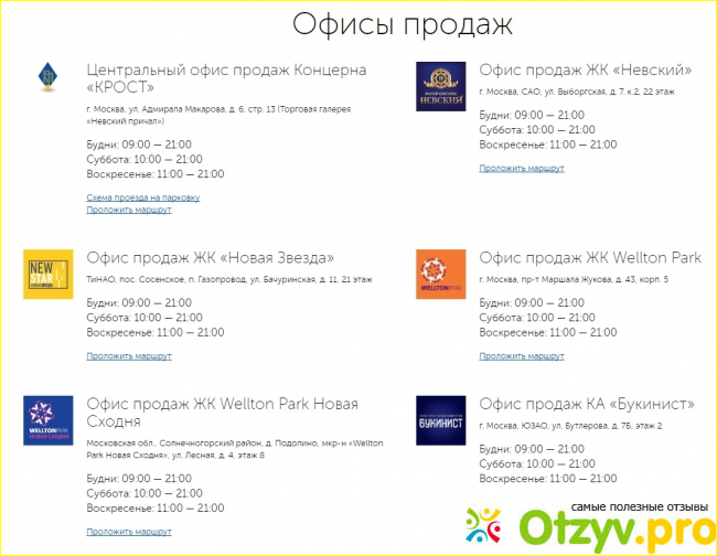 В этом разделе размещены адреса офисов, время работы и телефоны компании. Как оказалось, у этой компании довольно большое количество офисов в Москве и московской области.