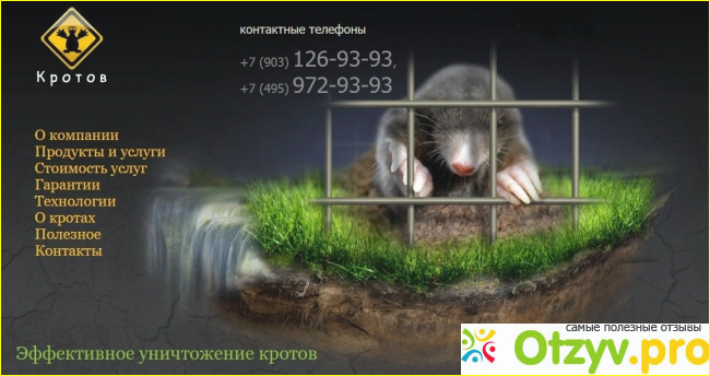 Специалисты предварительно измерили площадь участка, по итогу даже сделали скидку, уничтожение кротов происходило в нескольких этапов, и специальными методами и инструментами, вдобавок провели профилактическую установку капканов. С тех пор нападения кротов не наблюдалось. Спасибо огромное ''Кротов'', что спасли нас от этих грызунов.