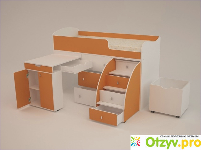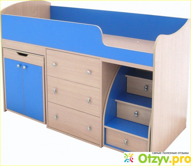Подымается ребенок по ступенькам. В них есть ящики, можно хранить всякую мелочь, одежду.