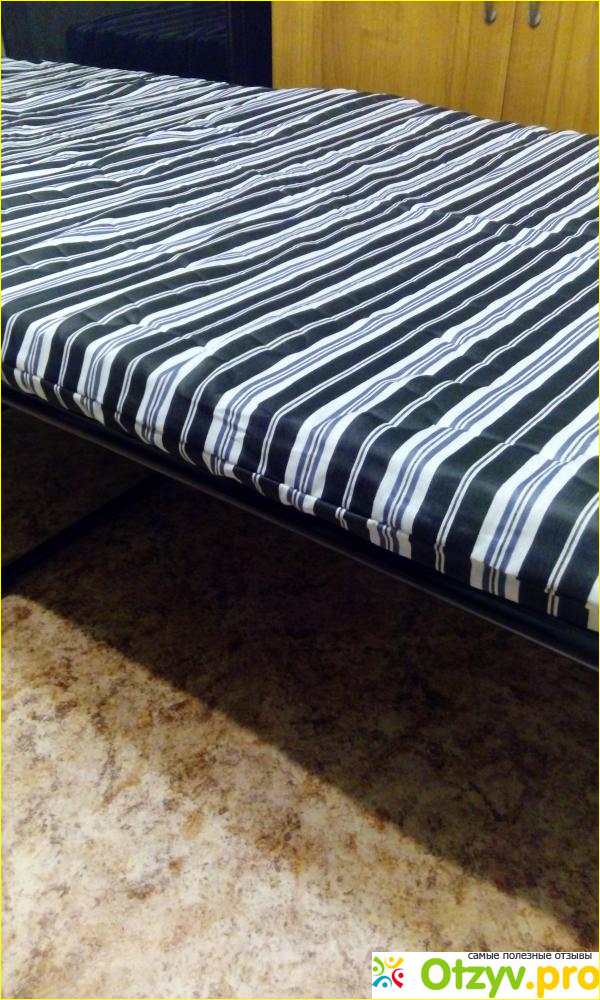Конечно, если сравнивать эту раскладушку со старыми, советскими, это просто небо и земля! Здесь ложишься без чувства, что проваливаешься прямо до пола). Пружины натягивают очень хорошо, не скрипят, не выпирают. Качество на высшем уровне. Как я уже писала выше, полностью соответствует цене.