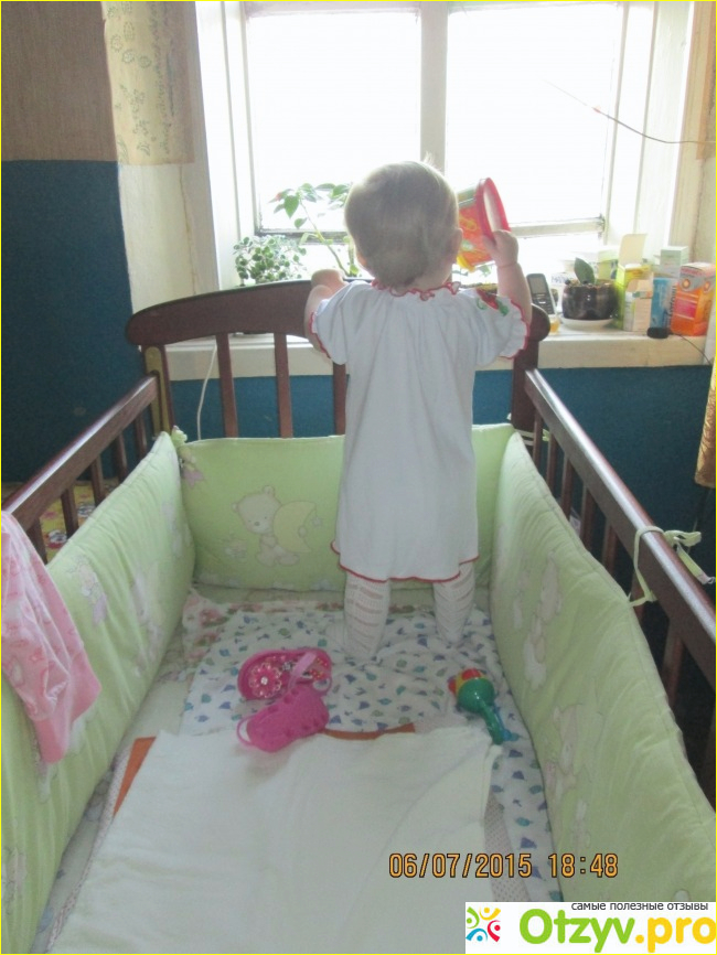 Не пожалела я о своем выборе ни разу. Кроватка светлая, очень приятная на вид. Дно можно установить на три уровня (повыше-пониже), один из бортиков опускается, колеса едут легко и мягко. Малыш даже не просыпается, когда я тащу кроватку на ночь к нашему дивану и обратно. Если колеса снять, получается отлиная кроватка-маятник, раскачивается очень легко и аккуратно. Есть еще вариант кроватки с ящиком, но нам он не понадобился - шкаф в комнате огромный.
