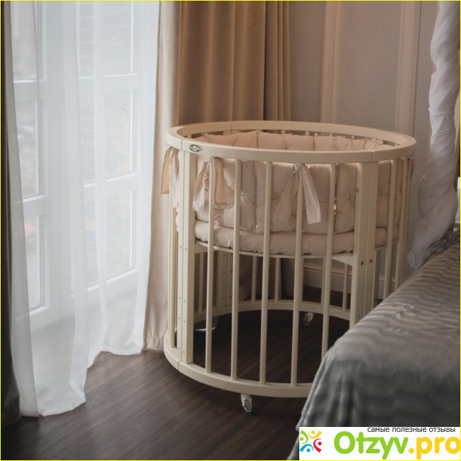 Первое, что сразу же произвело впечатление- это не привычный дизайн.Blandiana это не привычная прямоугольная кроватка со стенками, а стильная круглая люлька на колесиках с подходящим по форме матрасом. Второе- многофункциональность. Из грудничковой люльки кроватка очень легко превращается в овальную, для ребенка постраше. А это значит, не понадобится покупать подросшему сыну новую кроватку. При необходимости можно превратить в пеленальный столик, трансформировать в манеж, и в общей сложности получается не один, а сразу 7 предметов! Но самым решающим фактором покупки стало качество. Материал- натуральный массив бука. Не знаю, это достоинство дерева, а скорее всего мастерство производителя, но когда прикасаешься, то ощущение, что трогаешь не дерево, а что -то нежное, бархатистое. Удивительная текстура, это именно то, чего всегда хочется для ребенка. Доставили наш заказ точно в срок, аккуратно, в надежной упаковке.