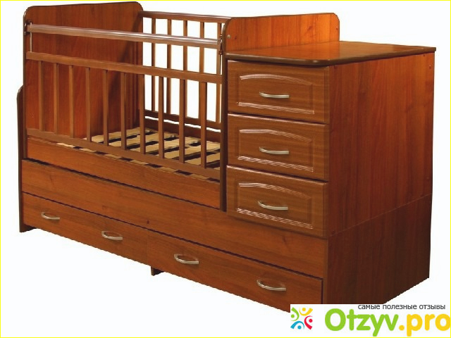 Итак, с чего же состоит данная модель детской кроватки. Самым главным делом это непосредственно кроватка для малыша. Так же удобный комод, который состоит из трех ящиков. Они достаточно вместительны, там храним вещи ребенка. Под кроваткой так же есть 2 ящика. Там можно хранить более крупные вещи, такие как одеяло , или же постельное белье.