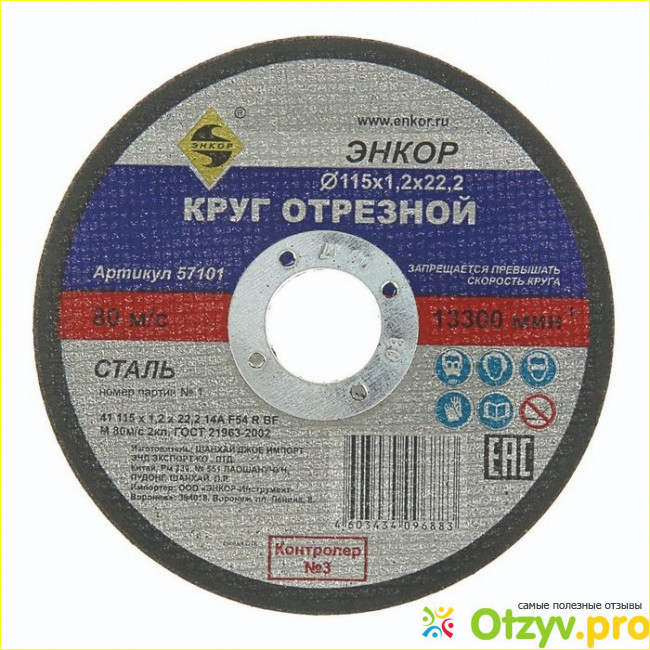 По опыту можно сказать, что отрезные круги Энкор имеют нормальное качество для своей стоимости. Режут металл нормально. Конечно, такие круги и пылят здорово и истираются хорошо. Но отсюда и низкая стоимость. Примерно то на то и выходит. При резке металла диск нагревается и начинает вонять химией. Видимо цветная печать или какое-нибудь связующее для абразива издает такой запах.