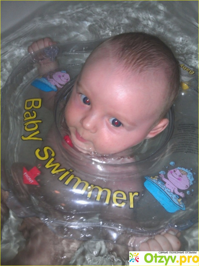 боялись шейку передавить! Наконец настал день х)))Мы наполнили ванну водой добавили много пены и игрушек. И потом уже стали пробовать одеть круг на малыша. Ребенок перепугался, но так как плескать в ванной он любит, бысто его отвлекли. Ребенок был в недоумении, мы тоже) застыли и ждали какая будет у него реакция)))через несколько минут пупс понял что все не так страшно, начал чуть двигать ручками и ножками))) было очень здорово смотреть на улыбающую мордашку) узнающую что то новое)))на это развлечение ребенка хватило где то на пол часа) все были довольны. Использовали мы его наверно месяцев до 9. Потом видимо по истечению времени использования или может мы плохо пользовались, у нас отлетели липучки, приклеить их к сожаления не получилось никак. И пришлось с ним попрощаться. Так вообще он нам понравился очень, качество отличное, порвать или проколоть материал очень сложно и это плюс)Внутри круга были какие то погремушки, и очень яркий и красочный дизайн. Так что мамочки не бойтесь покупайте своим малышам это развлечение, им очень понравиться, главное не напугайте малыша, будьте аккуратны без резких движения, а то прийдется его выкинуть так и не опробывав. Всем отличных купаний))!!!