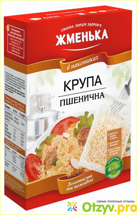 В самый первый раз купила кашу пшеничную. Продается каша в картонной коробке- пачке. В пачке было 4 пакета по 75 грамм. Я купила специально в пакетах, мне так удобно варить! Не нужно заморачиваться с граммами и водой при варке! Варить кашу проще простого взял пакет, залил водой и все жди готовности! Качеством каша хорошая, не разваривается! Пакет с готовой каши легко снимается и не рвется при варке, сохраняя кашу от воды! Вкусная и рассыпчатая, не липкая! Можно употреблять в виде гарнира, а можно и добавлять в нее сахар! Еще мне понравилось то, что вся подробная информация приведена на упаковке, и сколько белков, и как варить, и даже есть один вкусный рецепт по приготовлению!