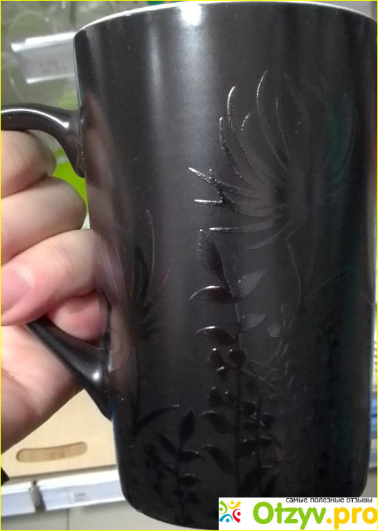 Мне самой понравилась черная. Не знаю дело тут в цвете, рельефном изображении или форме кружки - показалась очень интересной.