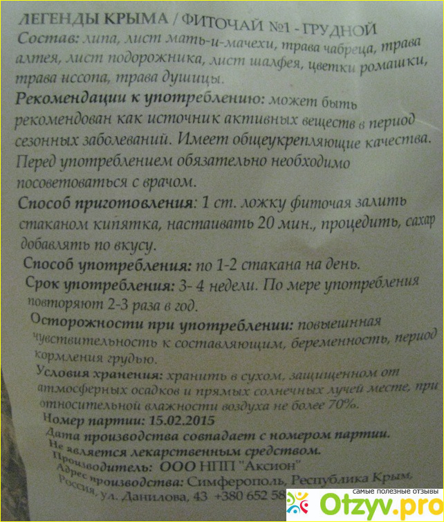 После возвращения из Крыма домой, во время акклиматизации, у меня началась простуда - боль в груди, в горле, начинался насморк. Я стала заваривать грудной чай, не так, как советует производитель, а просто в термосе, заливала кипятком несколько ложек сбора и настаивала 3-4 часа. Пить лучше не 1-2 раза в день, а три-четыре - для наилучшего эффекта. Через два дня я уже была здорова и забыла о простуде, замечательно эффективный сбор.