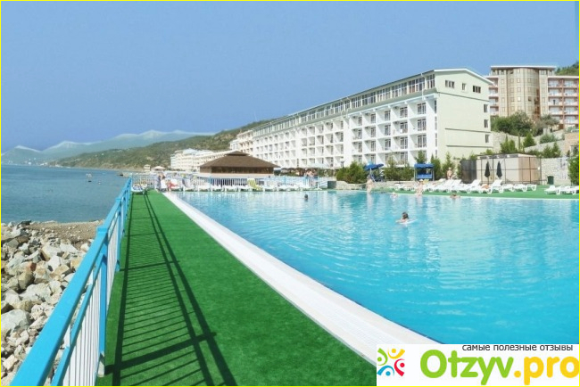 На изображении видно, как грандиозен отель, под названием "Россия", тому подтверждение, сам отель красивый и не маленький, плюс на его территории есть хороший бассейн (на фотографии под этим текстом видно какой красивый этот бассейн) и даже есть зеленого цвета дорожка вокруг бассейна, которая в свою очередь приятна на ощупь! А так же при отеле есть разные магазины и бар.: