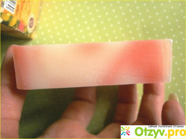 Цена около 130 рублей. В бруске 100 грамм. Мыло вот в такой коробочке. Выглядит мыло привлекательно. Состоит из 2 цветов: кремового и розового. Пахнет мыло также довольно приятно и натурально. А состав просто замечателен. Всё натуральное в составе, и на русском языке указан состав, всё понятно, почти:).