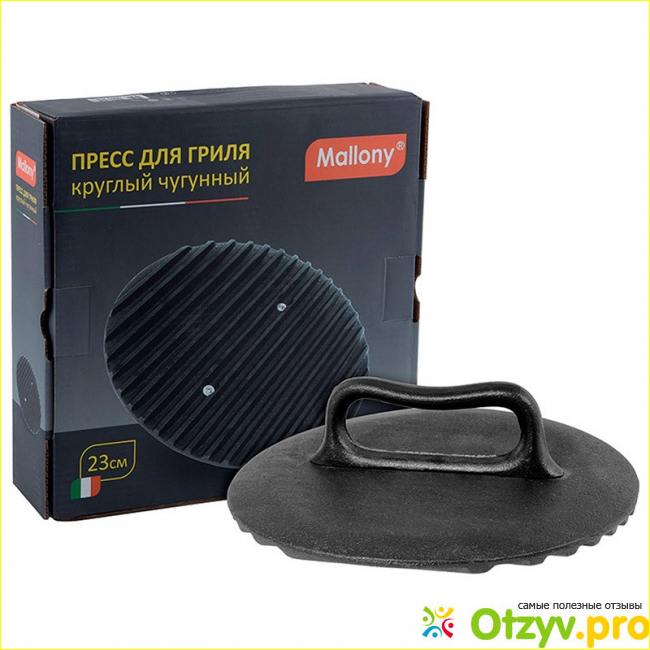 Крышка-пресс для гриля Mallony CH-L очень удобна использовании. Торговая марка “Mallony” представляет новую линию популярной посуды из чугуна, которая прослужит вам долго, если вы будете правильно ухаживать за ней. Чугунная посуда “Mallony” покрыта специальным антикоррозийным покрытием, служащим для надежной консервации посуды при длительном хранении и упрощения эксплуатации в начале использования.