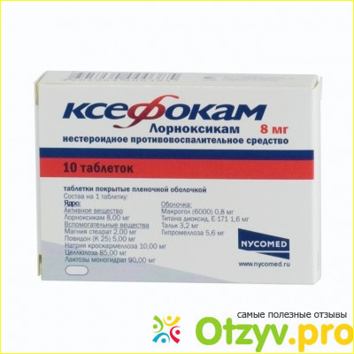 Данный препарат очень серьёзный и мощный. Поэтому он продается только по рецепту врача. Да и в принципе с ним перебарщивать Лучше не стоит, так как очень серьезно можно навредить своему здоровью. К счастью у меня не было никаких побочных действий. Хотя от этого препарата должны быть достаточно много. Данный препарат мне выписывал мой врач из-за сильных болей в спине. После применения данного препарата сильно у меня прошли. Мне очень нравится, что таблетка ксефокама достаточно маленькая. Кстати, данный препарат ещё продаётся и в ампулах для инъекций. Так что, Будьте осторожны с обезболивающим препаратом Ксефокам. Применяйте только по назначению врача. Спасибо за внимание, не болейте. До свидания.