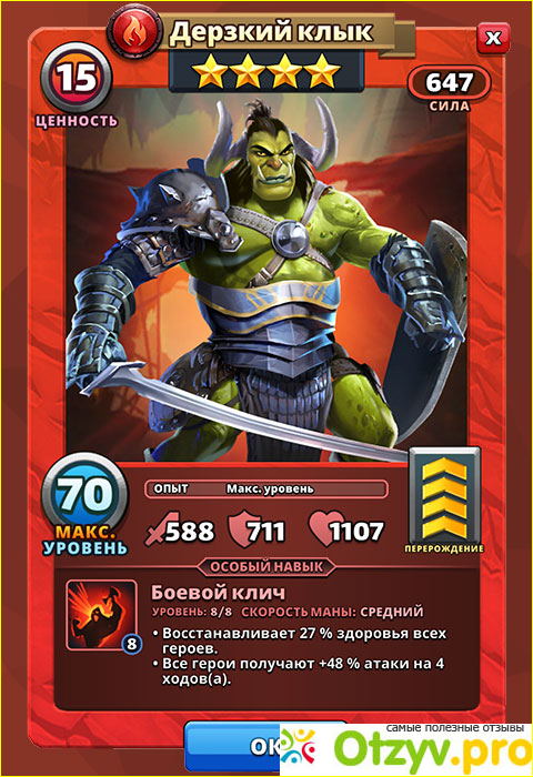 Дерзкий клык на максималках выдаёт меньшую атаку, большую броню и меньшее количество жизней.