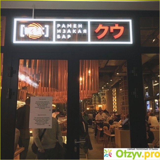 столик заказывали заранее и не прогадали. людей тьма. Половина из всех японцы, забавно за ними наблюдать со стороны. да и сам ресторан с японской кухней. я люблю мясные закуски курицу карааге, томаты в беконе. друзья уговорили попробовать рамен главное людо этого ресторана. Всё оказалось необычным и интересным на вкус. я не фанат японской кухни, но для разнообразия хотелось попробовать и такие блюда. В итоге все из нашей компании остались довольны. Обслуживание ненавязчивое, атмосфера оживленная, чувствуется кипучая жизнь большого города. только нет в меню ничего крепче пива. Поэтому попробовал японское пиво, неплохое. Есть отличие от нашего российского, я б даже сказал японское пиво оно чуточку специфичнее на вкус, но пить можно. Особенно под рамен и роллы он хорошо идет. А вот к десертам лучше взять зеленого китайского чая он здесь тоже довольно неплохой. в целом место необычное и сходить туда стоит хотя бы для того, чтобы попробовать фирменный рамен.