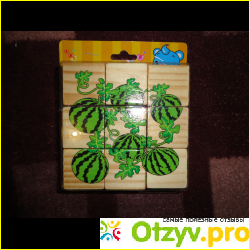 Упакованы были кубики в пластиковую упаковку на картонной подложке, где нарисованы варианты картинок, но они не совсем совпадали с тем, какие картинки действительно могут получиться из кубиков.