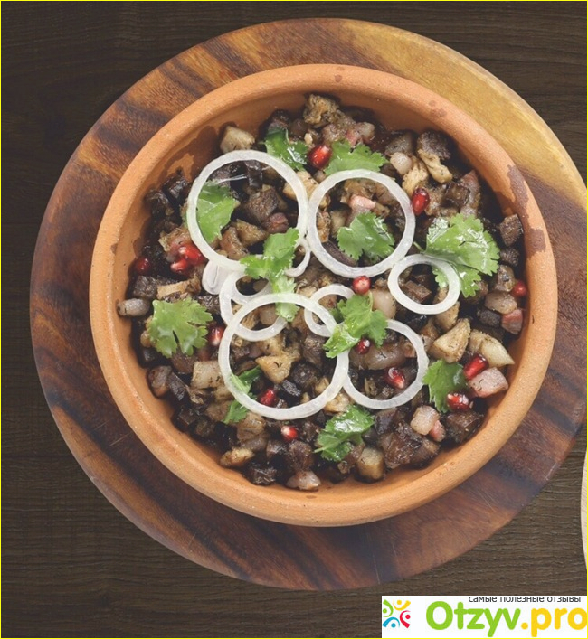 Все тщательно и аккуратно перемешать и обжаривать на сильной огне до золотистой корочки. После приготовления только посолить по вкусу. Не в коем случае нельзя солить во время жарки, так как от соли печень становится жесткая. Выложить в тарелку, украсить гранатовыми зернами и киндзой. Очень подходит к кучмачи красное вино Саперави. Всем приятного аппетита и времяпровождения. Пока.