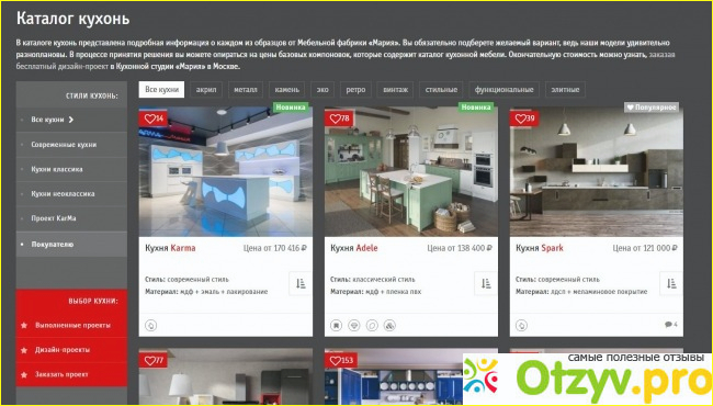 Начала как и часто перед тем как купить, с поисков в интернете. Естественно выбор был большой, да не просто большой а огромный... Тут и растеряться не долго. Но к счастью очень быстро напоролась на сайт "Кухни Мария". Мне очень там понравилось, такой он уютный, простой и понятный. Полазив среди большого выбора кухонь сразу увидела кухню "Federica". Она такая уютная, особенно понравилась в цвете бежевом ореховая патина. Много ящичков, стол остров, такая вся закруглённая и милая! Я в неё сразу влюбилась. Нашла в разделе "контакта" адреса магазинов, ближайший к нам оказался довольно близко ул. Профсоюзная, 63. Решилась сама туда наведаться и всё согласовать с размерами своей кухни. Пришла к ним через несколько дней , всё обговорили с менеджером, подобрали нужную компоновку. Далее оплатила стоимость сразу и стала ожидать с большим нетерпением. Привезли через полторы недели. Собирали довольно быстро, подключили все коммуникации , всю технику, всё настроили. И теперь я наслаждаюсь своей новой красивой кухней! И ещё очень приятно, что гарантия на кухню составляет целых пять лет!