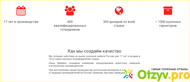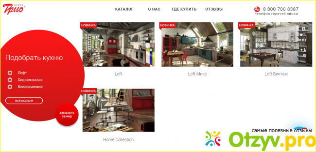 Также у фабрики Кухни Трио имеется в интернете свой собственный сайт. После того уже как я купила себе кухню ко мне пришла в гости пришла мама и тоже захотела обновить свой старенький гарнитур. Ну так как время было уже поздно ехать в салон чтобы ей показать кухни. Так как она тоже захотела себе такую же кухню купить я ей показала в интернете сайт кухни Трио. На сайте действительно очень удобная навигация всё просто и понятно в каталоге можно выбрать любую понравившуюся кухню. А также можно выбрать понравившийся вариант кухни или можно создать свой вариант. На сайте у них есть такая функция которая называется" создайте кухню своей мечты"- это делается очень просто выбираете тип фасада либо пластик, либо фасады алюминия, либо ЛДСП, либо МДФ и так далее выбираете цвет столешницы далее выбираете тип стёкол какие вам понравится там много вариантов далее. Далее выбираете цветовое решение для вашей кухни и после этого появляется рассчитать стоимость вашего проекта. Выводите ваше имя, контактный телефон, город и нажимаете кнопку рассчитать стоимость и перезвонить мне. И буквально в течение часа вам перезванивает и всё вам расскажут более подробно о стоимости выбранной кухни и так далее. Далее можно заказать замерщика домой чтобы всё точно и правильно у вас замерил. Маме это функция понравилась она так и сделала. Заказала эту кухню прямо на сайте ну оно это я и закончу свой отзыв и надеюсь что будет полезен.