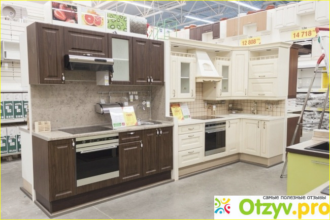 Всвязи с тем что магазины Леруа Мерлен стали очень популярны в последнее время, то вам потребуется достатоно много терпения для ожидания своей очереди. Но зато по сравнению с другими салонами цены на кухонную мебель зддесь в разы дешевле а качество не самое плохое.