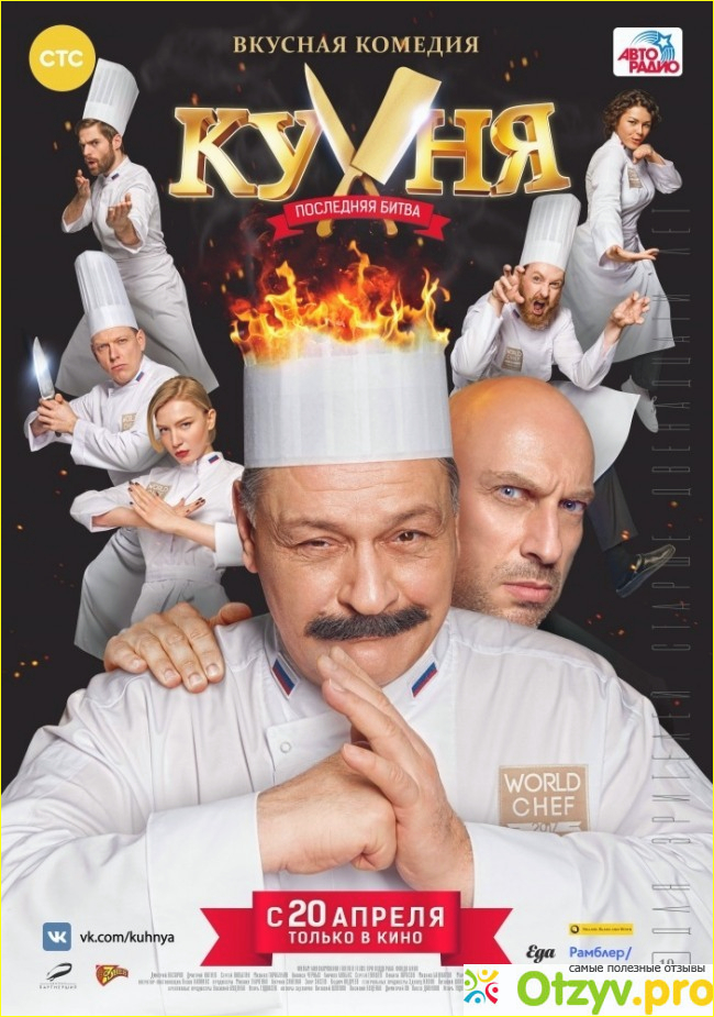 После долго перерыва между некоторыми сезонами интересно было пересматривать и обсуждать. Персонажи кухни отлично и гармонично смотрятся в фильме, мне сериал понравился, побольше бы таких простых и забавных сериалов. А то как то про медицину да про медицину снимают, всем болячки чужие показывая. Я считаю, что сериал "Кухня" уже себя изжил. Если вдруг решат снимать продолжение думаю успеха уже не будет. Да и "высасывать" сюжет из того что было просто забавно.