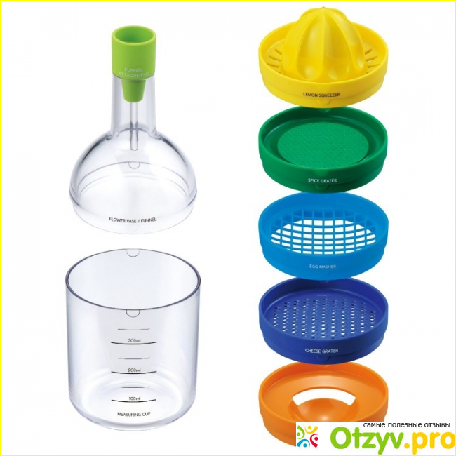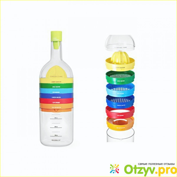 Выбирала недорогой, но нужный и практичный подарок для друзей на новоселье, а в итоге приобрела точно такой же и себе, и маме, и свекрови. Просто, как оказалось, кухонная чудо-бутылка 8 в 1 – это именно от набор необходимых хозяйке инструментов который всегда должен быть под рукой, да еще и в удобной форме. Бутылка представляет из себя сборную пирамиду из разных частей, которые легко соединяются друг с другом.