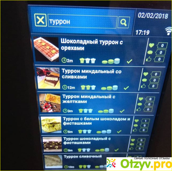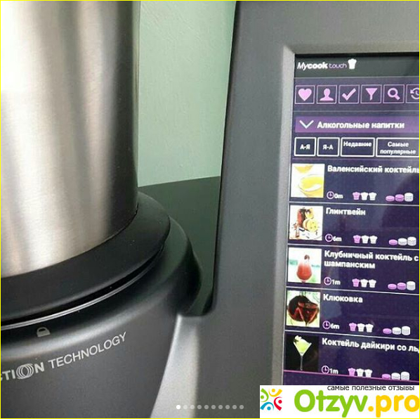 На сенсорном экране кухонного комбайна мы выбираем из каталога нужный рецепт. Можем добавлять их в избранное и любимые рецепты будут всегда под рукой. Можно находить рецепт прямо на экране.