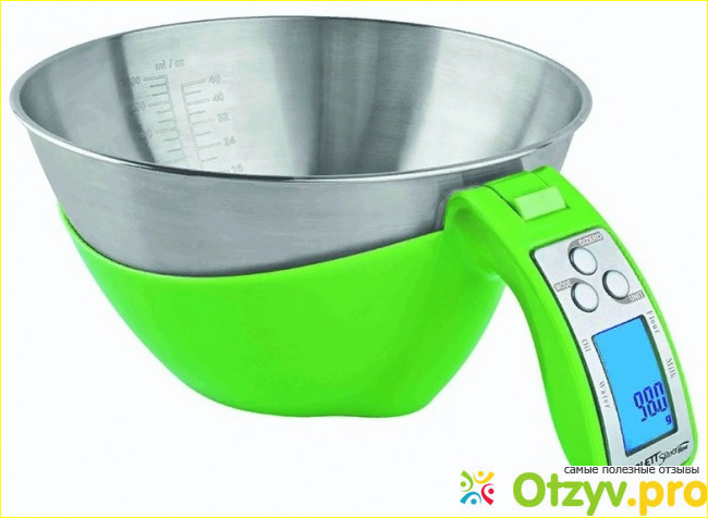 Самыми удобными электронными весами с чашей признаны весы марки Scarlett SL-1559, которые имеют форму кувшина с ручкой. У них экономичный расход батареек и доступная цена - 1300 руб.