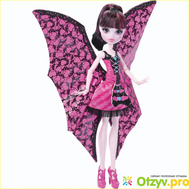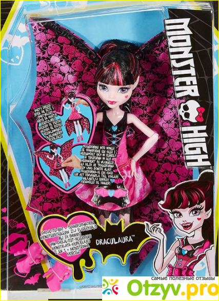 Кукла интересная и ребенок с ней играет не переставая :), что радует. Если обычные куклы лежат у нас на полке, то Дракулаура летучая мышь всегда в игре. На счет цены я была не рада, 35 долларов это дорого для куклы ростом с Барби, но если ребенку нравится играть и она так мечтала, думаю что лучше не покупать игрушки с которыми ребенок не играет, а собрать денежку и купить Дракулауру, уверенна что любой ребенок будет рад.