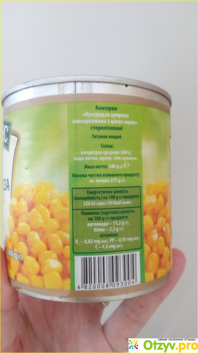 Состав содержимого банки мне нравится. Кукуруза не содержит никаких консервантов, в составе только зерна сахарной кукурузы, вода, соль и сахар, ничего вредного и лишнего.