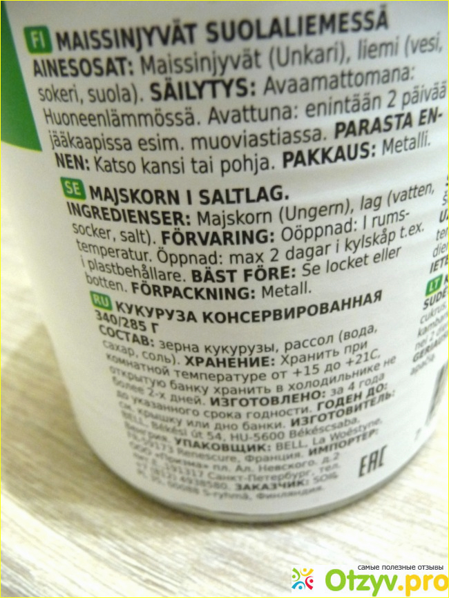 Вот к примеру, кукуруза эта. Сделана она конечно по заказу Финляндии, но во Франции.