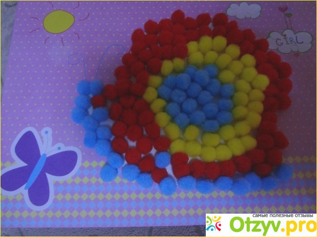 И попалась мозаика из помпонов - вся упакованная как самостоятельное изделие. Вот она точно рублей 70 стоит.