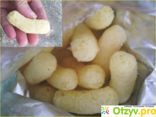 На фото видно, что одна палочка у меня в руках практически все пальцы прикрыла. Они очень сладкие и отдают ванилью. Цвет светлый, но яркий. Хотя это только за счет кукурузы. Красителей в составе нет. Это радует.