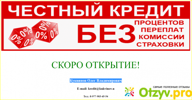 Я здесь не для того, чтобы сделать себе рекламу или (не приведи Господь) оправдываться. Как видим из отзыва, действительно имеют быть тексты моих писем и высказывания о том, с какими (по истине, не побоюсь этого слова) УРОДАМИ приходится работать. В отзыве не отражается никакая схема какого-либо обмана. То, что с заемщика обращающегося ко мне потребуется оплата в размере 350 рублей прописано совершенно открыто в тексте моего самого первого письма. Тот, кто не готов производить эту оплату (по различного рода обстоятельствам) просто не присылает мне свои данные и не заполняет анкету. После того, как человек мне присылает свои данные, я переспрашиваю, действительно ли он внимательно ознакомился с моим письмом и знает ли про оплату? Если да, то лишь в этом случае я принимаю у него заявку и выставляю реквизиты СВОЕЙ ИМЕННОЙ ЛИЧНОЙ банковской карты и ИДЕНТИФИЦИРОВАННОГО Qiwi кошелька! Никуда после оплаты не пропадаю и в случае отказа по заявке также честно возвращаю платеж в сумме 350 рублей человеку, который производил оплату на его мобильный номер телефона привязанный к анкете на получение денежных средств. На основании вышеизложенного считал, считаю и буду считать подобных личностей, которые оставили комментарий к моей работе (отзывом назвать это не является возможностью) моральными уродами. Спасибо за внимание! P.S. Каждый из Вас может со мной связаться по моему личному телефону: +7-977-903-65-54