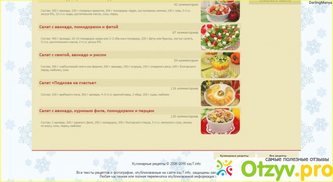В своем отзыве я хочу рассказать про сайт say7 info - сайт рецептов Анастасии Скрипкиной. Мне он пришелся по вкусу как в прямом смысле этого слова (очень уж вкусные рецептики там), так и по удобству интерфейса.