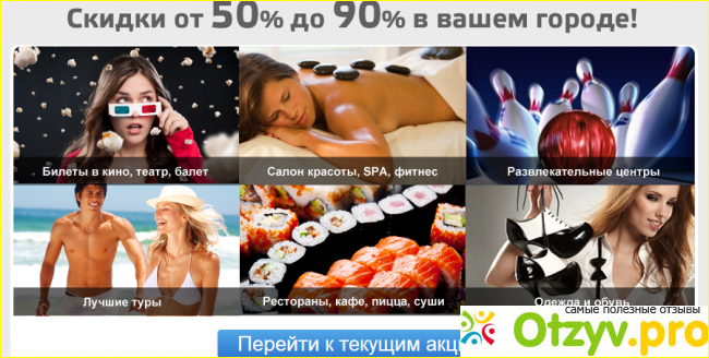 Что в городе Москве в компании купи купон актуально и востребовано перечислим вид оказываемых услуг и товаров от разных сотруднических компаний: еда, красота, здоровье, развлечение, спорт, авто, обучение , товары, туры и разное. В каждом из этих разделов будет огромное масса предложений и возможностей воспользоваться за разумную сумму средств. Но для начала Вы должны приобрести купон на скидку в то или иное заведение. Приведу пример: Блюд Японской кухни суши Якитория продаются за 70 рублей, а в самом заведении Якитория они позволят Вам покушать суши за сумму со скидкой до 50 процентов.