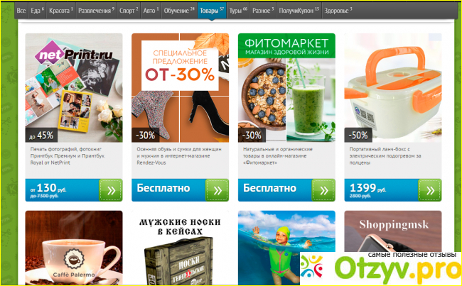 В общем выбор широкий, можно найти нужный вам товар или услугу с приличной такой скидкой. А скидки там действительно хорошие! Приобретаешь купон на товар или услугу, распечатываешь его и идешь с ним туда, кто этот/эту товар или услугу предоставляет.