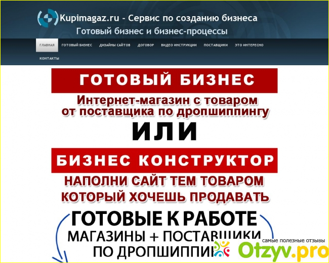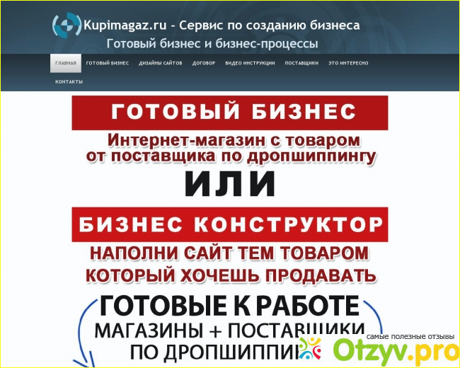 Конечно, можно заказать сайт и самостоятельно искать поставщиков. Но мне кажется, очень удобно, когда все это делают за вас. Именно поэтому я и решилась связаться с Купимагаз. ру. За оплату в пять тысяч рублей я получила от Купимагаз. ру целый ряд инструментов для успешного ведения собственного бизнеса через интернет: