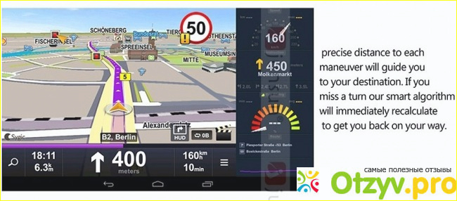 Также тут предусмотрен встроенный навигатор, который очень точно показывает нужный мне маршрут, при этом я могу пальцами увеличивать или уменьшать карту. В дороге - отличный помощник.