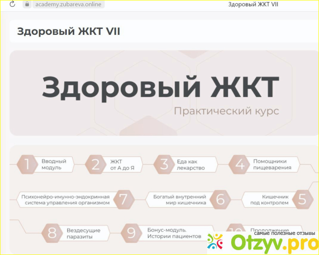 Прошла курс Здоровый ЖКТ в Академии здоровья Зубаревой. По сути 7 модулей, не считая вводного и двух заключительных с кейсами и анкетированием. В целом получила много полезной информации, которую стоит применять, если хотите наладить работу ЖКТ и решить многие проблемы по здоровью, так как хорошая работа органов ЖКТ по сути – залог сбалансированной работы органов и систем организма.