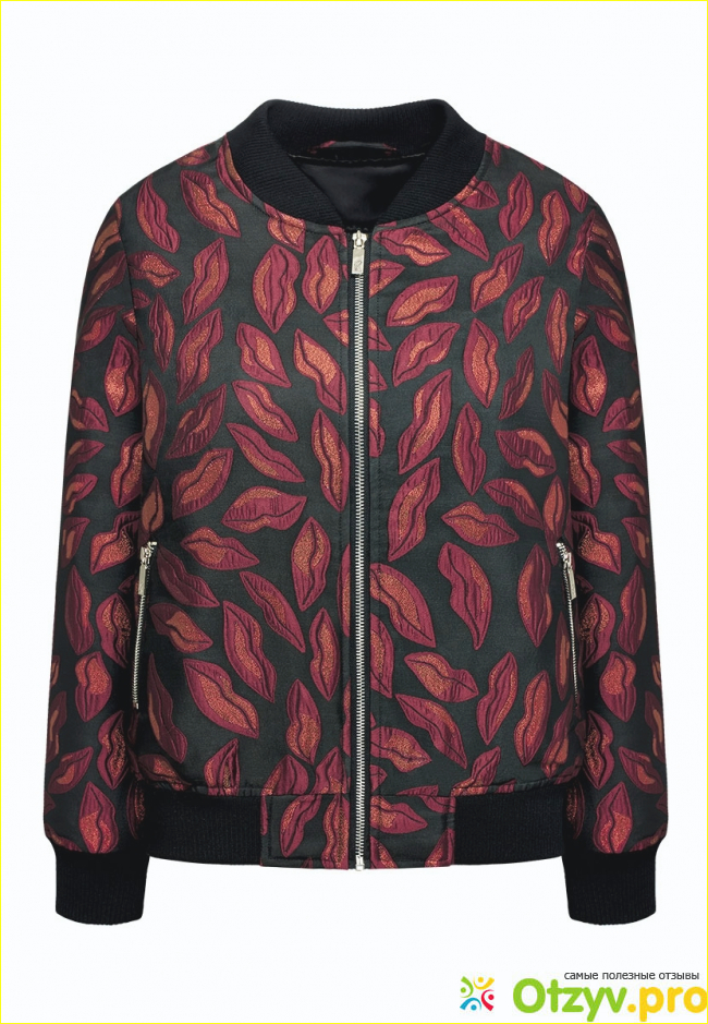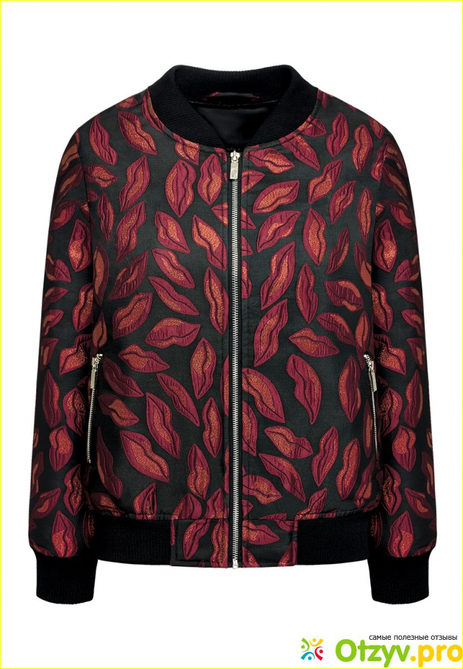 Отлично переносит стирку и не мнется, так что не нужно гладить. Она идет с жаккардовым рисунком и люрексом на рисунке губ. Длинные рукава. Центральная застежка на металлическую молнии с ветрозащитной планкой. Хорошо сочетается с любим стилем. Одевала под классические черные брюки, юбки. Эластичная резинка по горловине, не топорщится, сидит хорошо. Есть большие карманы по бокам, вмещается кошелек и мелочь. По низу изделия резиновая вставка для того, чтобы талию подчеркивать, но она не жмет. Она же и по рукавам. Внутри черный подклад, он пачкает светлую одежду. Спереди идет молния.