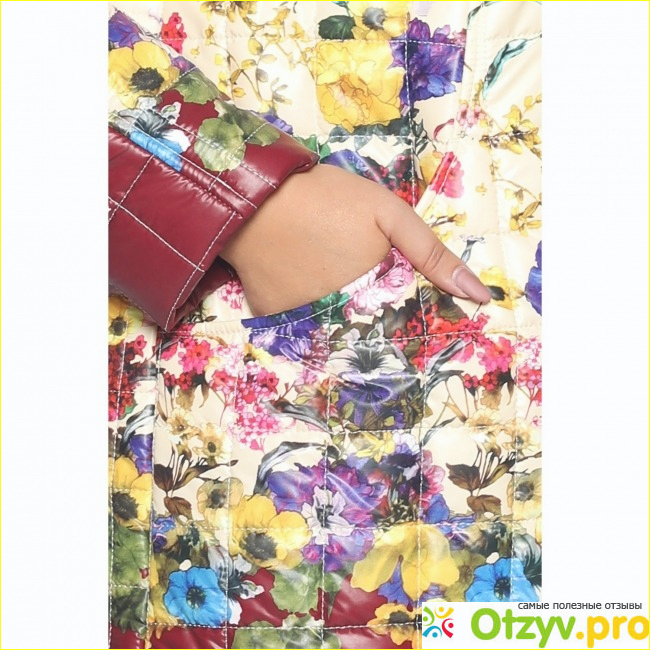 Больше всего мне нравится расцветка. Цветочные принты снова возвращаются в моду, поэтому пользуются большой популярностью среди современной молодежи. Молниевая застежка позволяет быстро и без особых усилий застегнуть курточку, особенно тем, кто не умеет быть пунктуальным и собирается на ходу. По бокам приделаны карманы, но уже без застежек. В них можно хранить мелочь, фонарик, конфеты, но не кладите туда телефон или драгоценности. Мастера решили разнообразить рукава и низ куртки. Они наполнили их бордовым цветом, что придает свежести и стиля.