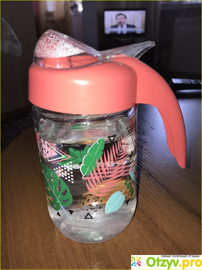 Но оказалось, что при попытке налить воду из кувшина в стакан вода проливается. Как бы я не прилаживала прокладку все равно очень часто вода лилась или капала мимо. После нескольких попыток я разочаровалась окончательно. Пришлось открутить крышку и наливать воду в стакан прямо из банки.