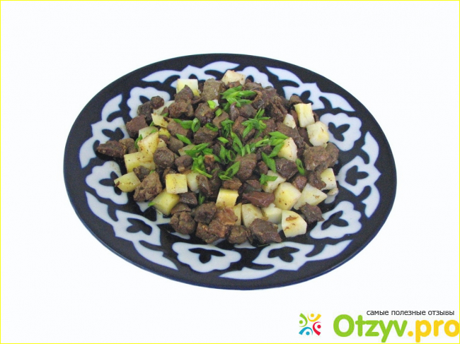 В Казахстане традиционным блюдом на столе считается куырдак. Фишка в том, что мясо и субпродукты не жарят в масле, а оно томится в собственном соку.