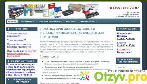 В общем, я осталась довольна нашим с ними сотрудничеством. все картриджи для принтера у меня приняли без проблем и придирок. Деньги заплатили и все хорошо. Так что, буду еще им наши картриджи сдавать, так как весьма выгодно по цене получается. Сейчас еще с ними договариваюсь об оптовых поставках, так что наше с ними сотрудничество будет еще и взаимовыгодным. Могу смело рекомендовать и вам Quadrotoner, они реально работают на совесть и ценят каждого клиента.